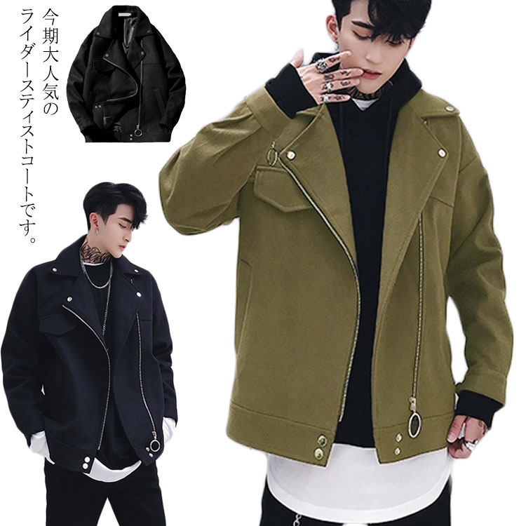 ライダースコート ショートコート メンズ 厚手 ジャケット アウター ショート丈 腰丈 コート カジュアルコート 防寒着 中綿 ファスナー付き ライダースジャケット ピーコート 秋服 秋冬 モード おしゃれ 新作 ストリート系 モード