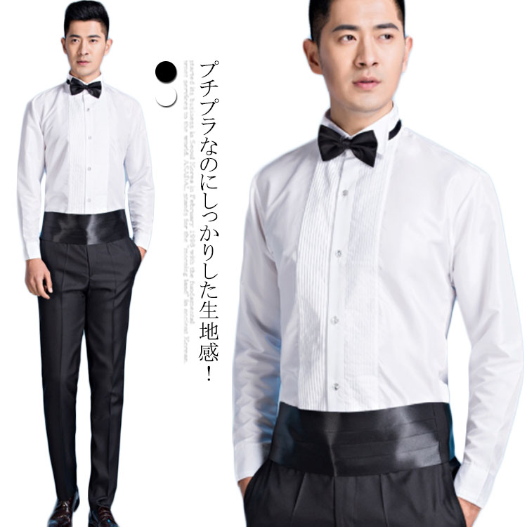 送料無料 ウィングカラーシャツ タキシード シャツ ウィングシャツ 黒 白 結婚式 パーティー 演奏会 二次会 ウエディング タキシード用 フォーマル 撮影 プリーツ入り 長袖 シャツ 団体服 ステージ衣装 合唱 ピアノ 発表会 演劇 マジック 手品
