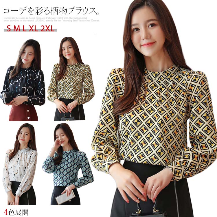 送料無料 柄物 ブラウス 柄ブラウス プルオーバー シャツ 長袖 レディース シフォン 長袖トップス 柄物シャツ マルチカラーシャツ オシャレ 秋冬 春 個性的 きれいめ 花柄 プリント