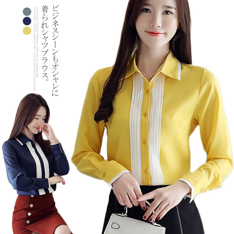 送料無料 ビジネス シャツ ブラウス レディース 長袖 トップス 前立てタック シフォン 長袖ブラウス バイカラー とろみ オフィス ブラウス 長袖シャツ フリル フェミニン 大きいサイズ 大人 通勤 OL カジュアル フォーマル 春 秋冬