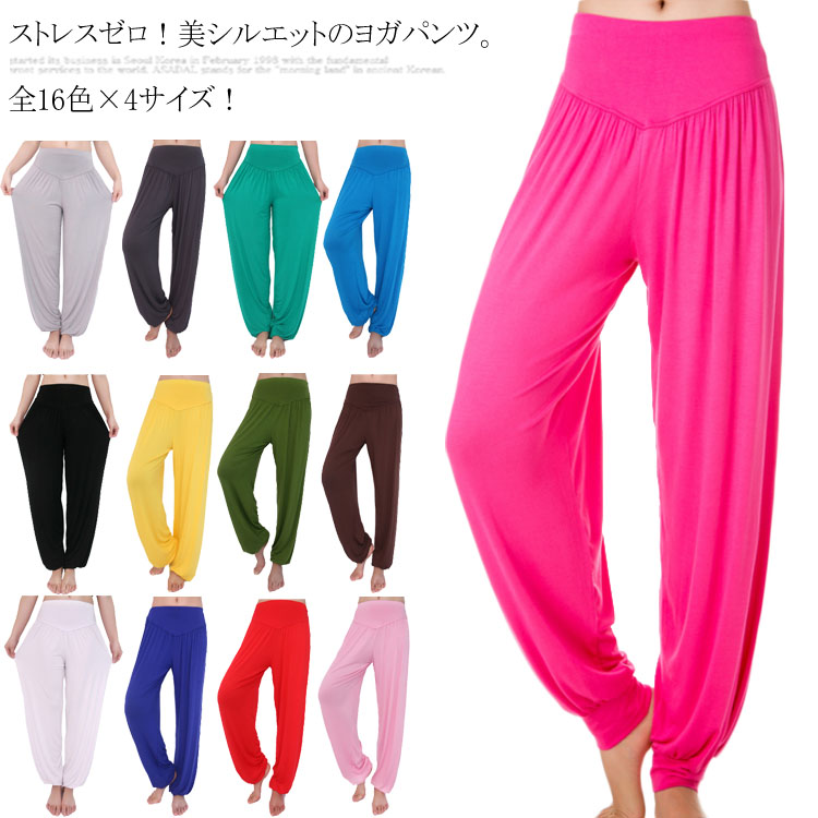 送料無料 全16色×4サイズ! ヨガパンツ フィットネスウェア ヨガパンツ ダンスウェア レディース ゆったり とろみ モダール ヨガ パンツ サルエル バルーンシルエット バルーンパンツ ダンス ストレッチ 伸縮性 ウォーキング フィットネス スポーツ 部屋着 リラックスパンツ 美脚