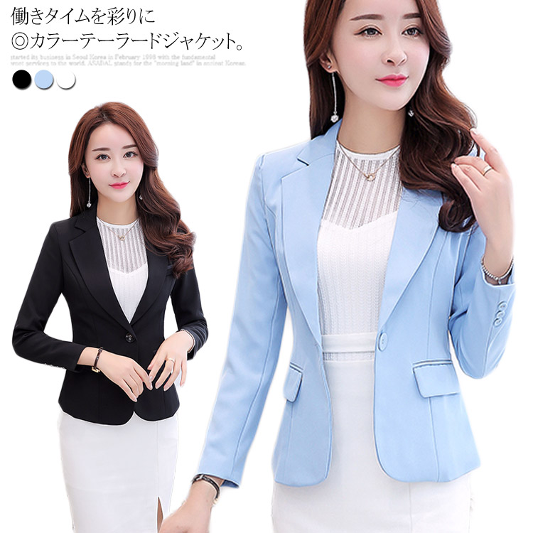 全3色×8サイズ!スーツ ジャケット アウター テーラードジャケット ショート丈 レディース スーツコート カラフル スリム 着痩せ オシャレ シワになりにくい 形態安定 ストレッチ カジュアル フォーマル 秋 冬 裏地付き 大きいサイズ