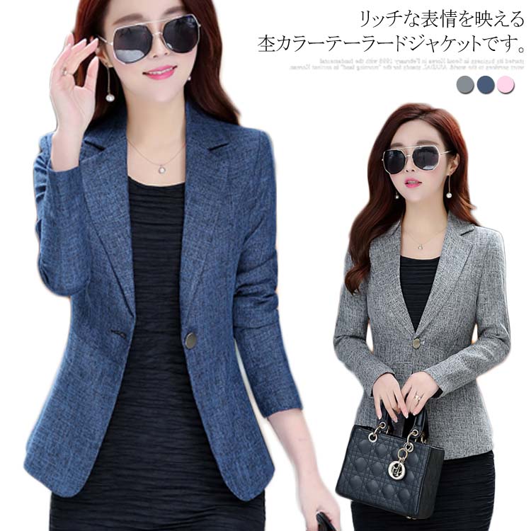 全7サイズ! 2019新作 テーラードジャケット スーツジャケット アウター レディース スリム 着痩せ ワンボタン くびれ 大きいサイズ 裏地付き 杢カラー カジュアル 秋 冬