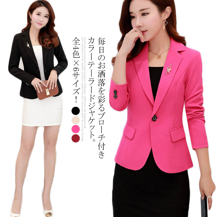 全4色×6サイズ! テーラードジャケット アウター スーツ ジャケット ショート丈 レディース スーツコート カラフル スリム 着痩せ オシャレ シワになりにくい 形態安定 カジュアル フォーマル 秋 冬 裏地付き 大きいサイズ