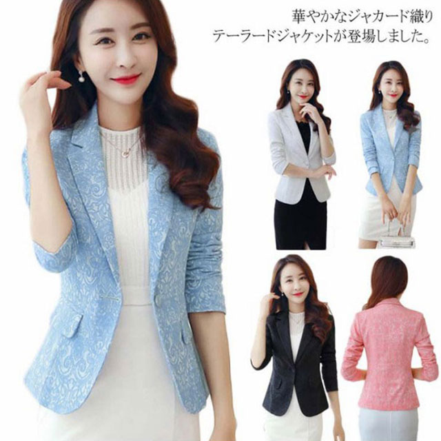 テーラードジャケット ジャカード 花柄 アウター スーツ ジャケット ショート丈 レディース オフィス 通勤 入園 パーディー イベント用 OL 裏地付き 秋冬 刺繍 キレイめ大きいサイズ
