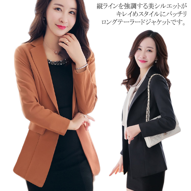 テーラードジャケット スリム ロング丈 レディース ロングテーラードジャケット スーツ ジャケット カジュアルスーツ ビジネス オフィス 通勤 OL 縦長 着痩せ アウター 秋冬 裏地付き ポケット付き