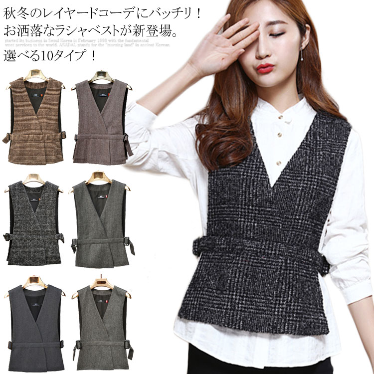 ベスト 厚地 ラシャ レディース ラシャベスト サイドベルト チェック柄 無地 ノースリーブ トップス 袖なし コート 秋冬 ジレベスト ノースリーブ ベスト 大きいサイズ カジュアル キレイめ 通勤 OL オフィス