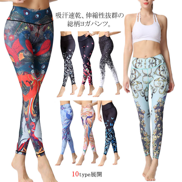送料無料 ヨガパンツ スポーツタイツ ヨガウェア レギンス レディース 伸縮性 ハイウエスト 総柄 レギンス フィットネスウェア スポーツウェア アンクル 9分丈 花柄 スポーツスパッツ 速乾 ストレッチ 着圧レギンス タイト ピラティス