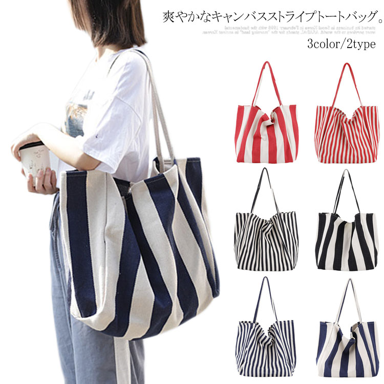 トートバッグ ビッグバッグ レディース キャンバス バッグ 大きめ A4サイズ対応 サブバッグ マザーズバッグ ストライプ バッグ カバン 学生 主婦 メンズ 出張用 短期旅行 通勤 通学 大容量 軽量 旅行 お出かけ お買い物 エコバッグ ジムバッグ