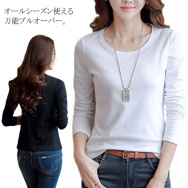 送料無料 プルオーバー レディース トップス ベーシック 無地 長袖プルオーバー カットソー ラウンドネック 秋冬 インナー Tシャツ コットン