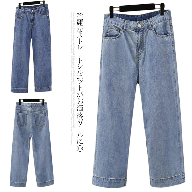 ストレート デニムパンツ 9分丈 レディース ワイドパンツ ウォッシュ加工 ユーズド加工 ワイド デニム ジーンズ ジーパン クロップドパンツ ストレッチ ボトムス コットン デニム