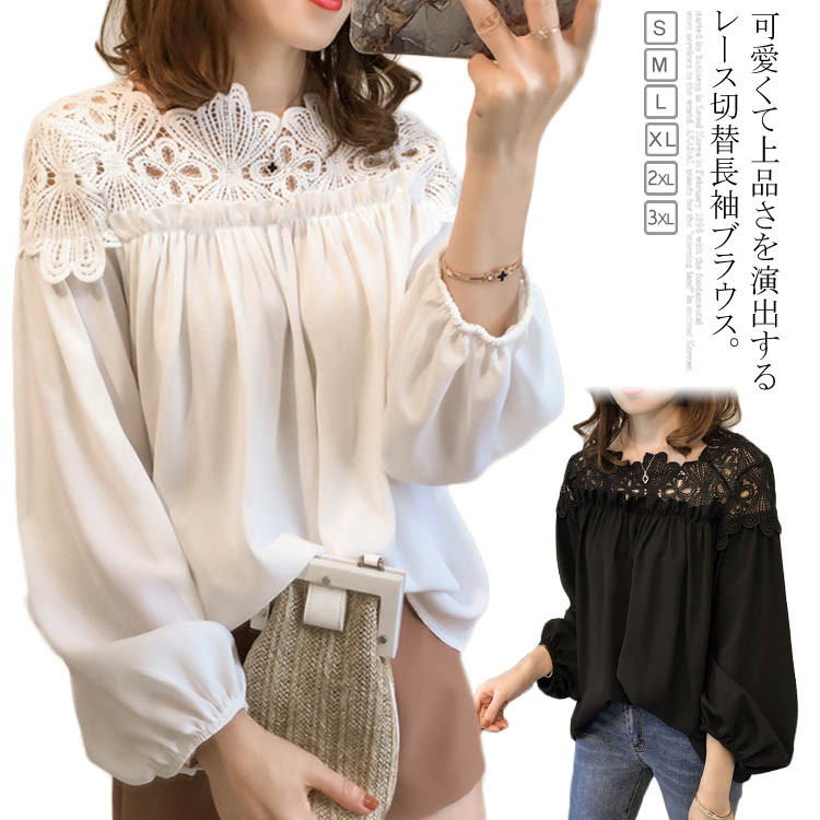 レース切替 長袖 ブラウス トップス レディース 無地 花柄 レース ゆったり ブラウス 長袖シャツ 体型カバー キレイめ シフォンブラウス プルオーバーシャツ