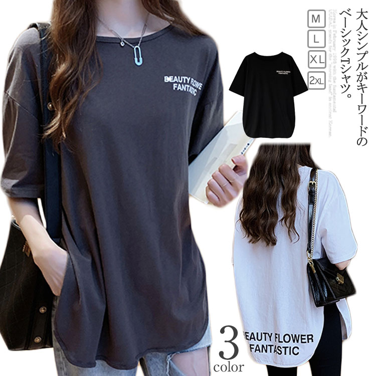 送料無料 ビッグTシャツ 7分袖 Tシャツ ゆるT 大きいサイズ レディース 体型カバー 着痩せ ゆったり ビッグサイズ シンプル 無地 トップス カットソー クールネック 後ろ長め カジュアル お洒落 秋 夏