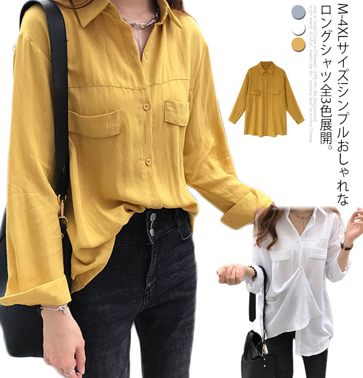 送料無料 M-4XLサイズ!シャツ 大きサイズ レディース 長袖シャツ 長袖 無地シャツ ビッグシャツ シンプル 無地 ビッグ トップス 春 秋 ゆったり 体型カバー カジュアル レイヤード