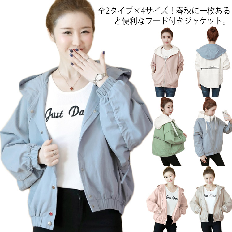 送料無料 全2タイプ×4サイズ!カジュアルジャケット レディース アウター 秋 ショート丈コート フード付き ジャケット ブルゾン ゆったり 通勤 通学