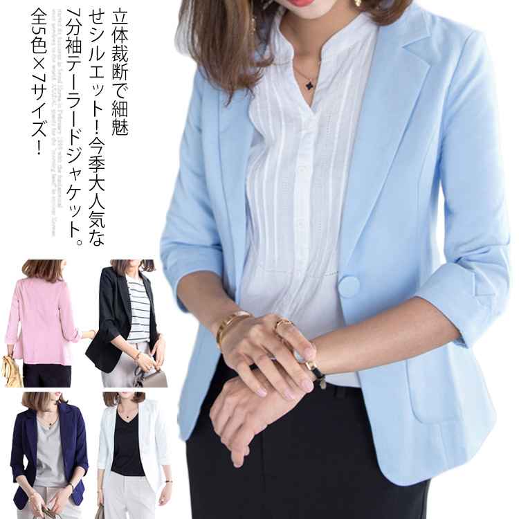 送料無料 全5色×7サイズ!夏ジャケット テーラードジャケット 七分袖 サマージャケット テーラード ジャケット 7分袖ジャケット 薄手 アウター シンプル 無地 カジュアル 上品