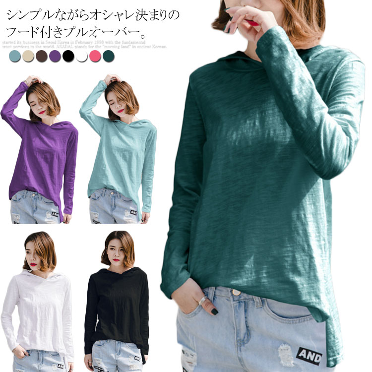 送料無料 長袖プルオーバー トップス フード付きプルオーバー 長袖カットソー レディース トップス パーカー 天竺綿 スリット入り カジュアル オシャレ トレンド 秋 春 ゆるシルエット 体型カバー 着痩せ