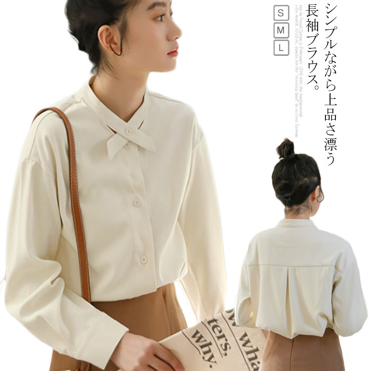 送料無料 ブラウス 長袖 リボン レディース 長袖シャツ オフィス ボウタイ 長袖ブラウス トップス 秋冬 春 ゆったり 大人 上品 立ち襟 無地 OL 通勤 事務服 20代 30代 40代