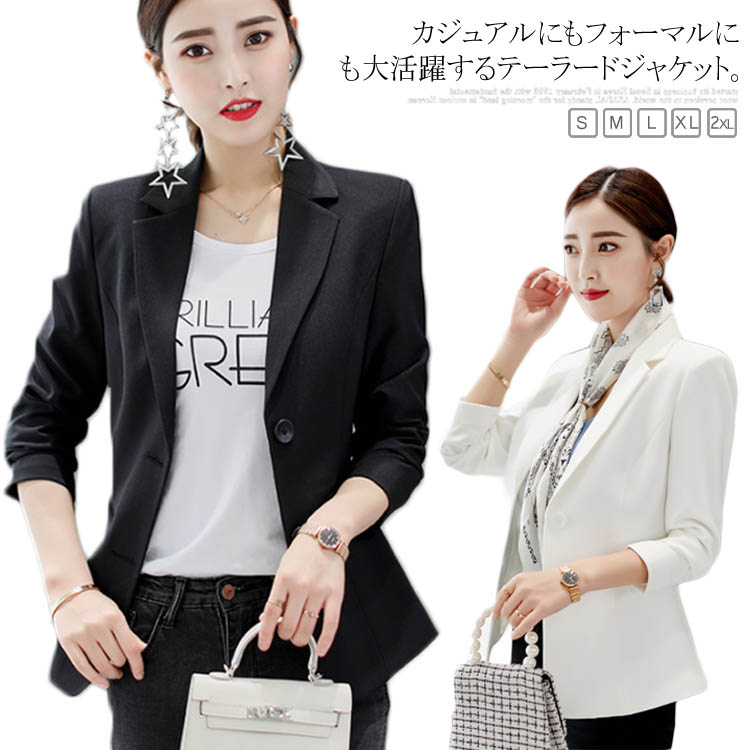 テーラードジャケット スリム レディース 無地 アウター ジャケット ビジネス 通勤 OL オフィス カジュアル スーツコート スプリングコート 春 秋