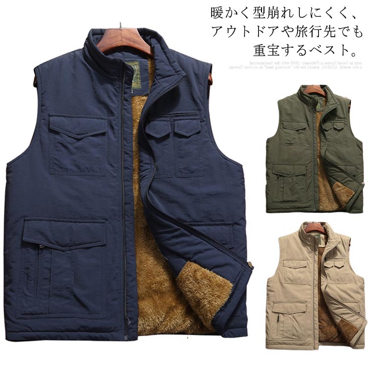 ベスト メンズ 裏ボア ジレベスト チョッキ トップス 裏起毛 無地 厚手 ポケット付き 防寒 保温 秋冬物 あったか 大きいサイズ アウトドア お洒落