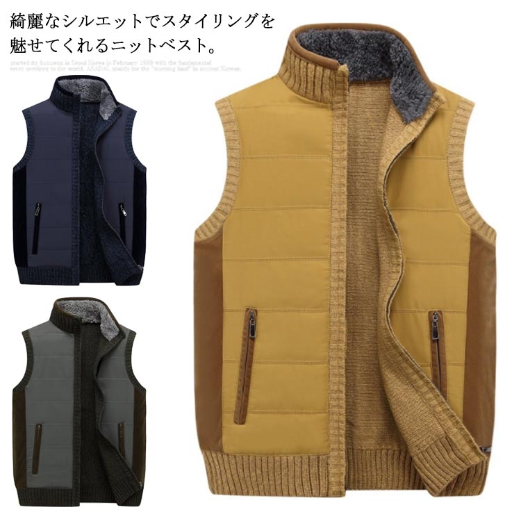 インナーベスト メンズ ニットベスト ジップアップ 前開き ベスト トップス ニットウエア 春秋 冬服 大きいサイズ お洒落 ポケット付き 30代 40代 50代