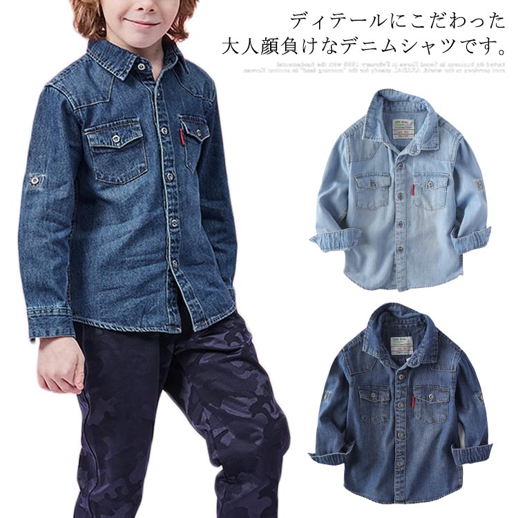 デニムシャツ 男の子 子供服 長袖 カジュアルシャツ トップス ジュニア キッズ服 春物 通学 通園 お洒落 新作 100 110 120 130 140 150 160