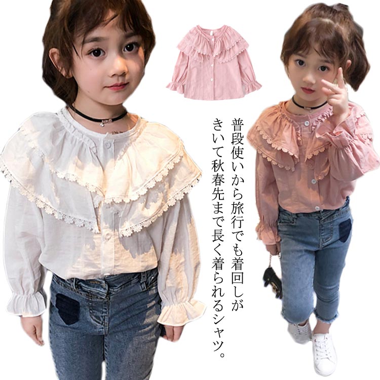 ブラウス 子供服 シャツ 女の子 長袖 トップス カジュアルシャツ ガールズ キッズ服 シンプル 春秋 ファッション感 入学式 入園式 卒業 可愛い 90cm 100cm 110cm 120cm 130cm 140cm