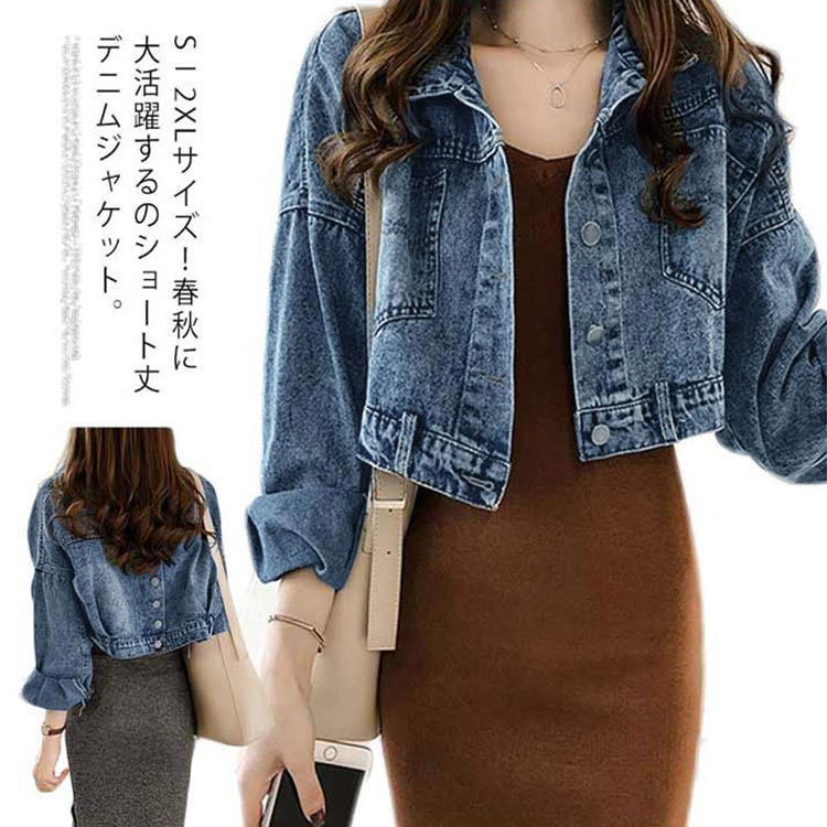 S-2XLサイズ!デニムジャケット Gジャン レディース デニムアウター ショート丈 デニム ジャケット 長袖 春 秋 トレロ 可愛い
