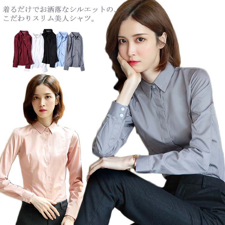 【2020春新品】ブラウス レディース 白シャツ 長袖 シャツ レギュラー オフィス フォーマル トップス ビジネス 就活 OL 事務服 卒業式 入学式 無地 着痩せ お洒落