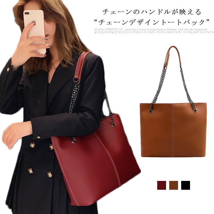 トートバッグ レディース ショルダーバッグ 肩掛け 大容量 チェーン A4サイズ 2way 軽量 お洒落 ハンドバッグ カバン OL 通勤 オフィス 通学