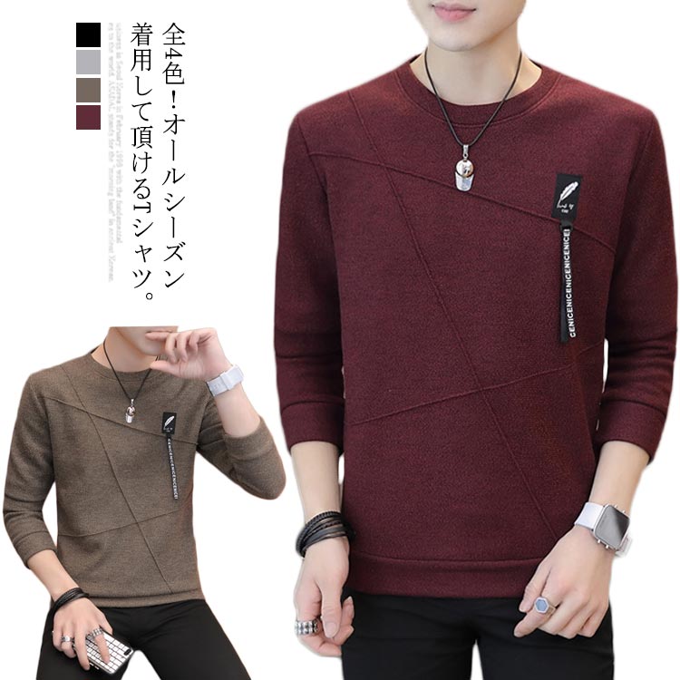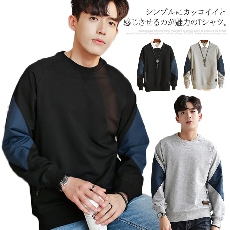 Tシャツ メンズ 長袖 カットソー 切り替え ラウンドネック カジュアル トレーナー 大きいサイズ 無地 秋冬物 メンズファッション ブルオーバー お洒落