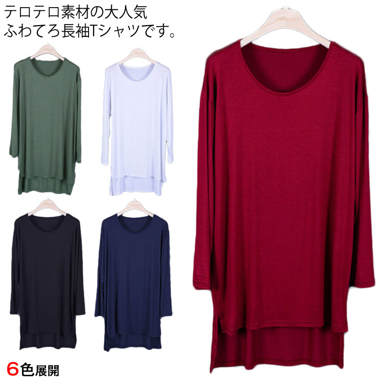 送料無料 Tシャツ 薄手 長袖 無地 ロング丈 トップス レディース ゆったり お洒落 カジュアル ベーシック 春物 秋物 新作 ラウンドネック