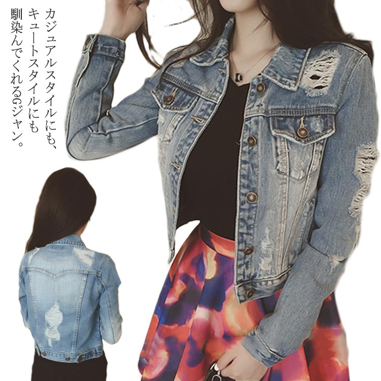 デニムジャケット レディース ショート丈 ジージャン Gジャン ダメージ加工 クラッシュ アウター ジャケット 着痩せ 春秋 秋物 お洒落