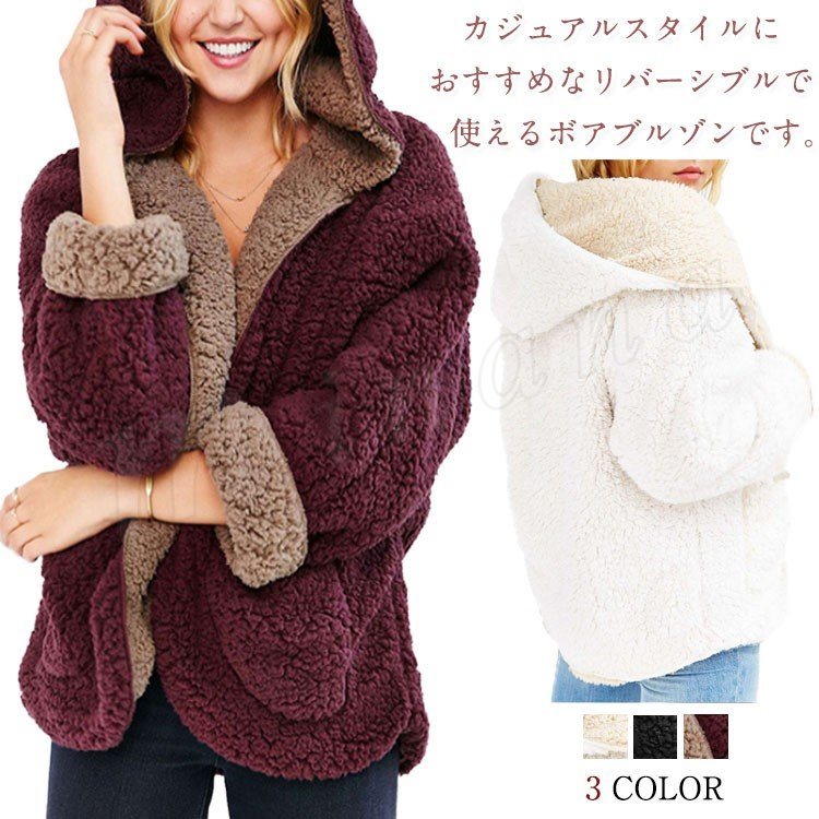 違う表情を見せるアウター リバーシブルコート ボアジャケット ブルゾン ジャケット レディース フード付き パーカー オシャレ カジュアル シンプル